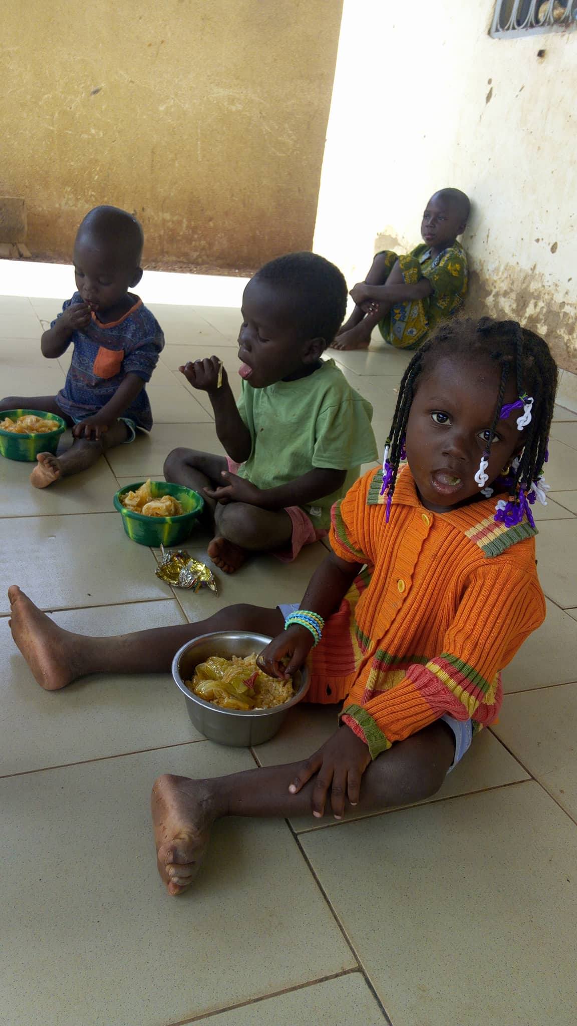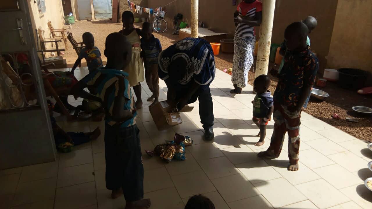 - Gourcy- Silas Ouedraogo :Repas de Noël offert et des cadeaux aux enfants de l’orphelinat (Ballons, hochets, cordes à sauter, chaussures, brosses à dent, dentifrice...).
